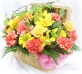 ★しっかりとしたつくりの宝石箱バスケットにイエロー系のお花で爽やかにアレンジしました♪