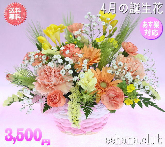 4月の誕生花★オレンジアレンジ3,500円【送料無料】花言葉付き【かすみ草】【四つ葉メッセージボトル選択可】ネット特価!
